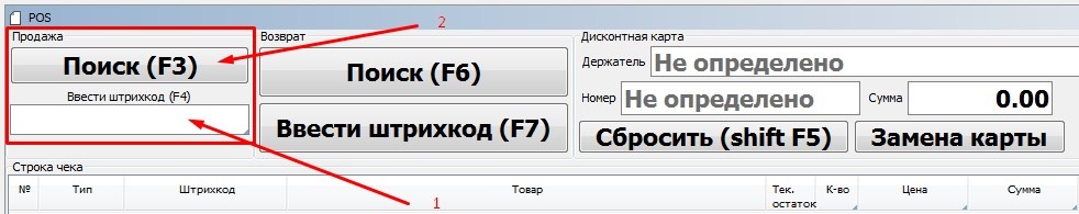 В открывшейся форме мы можем начать следующий этап работы – формировать позиции в чеке.