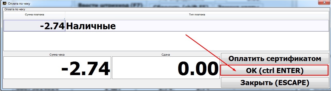 Программа откроет окно для подтверждения ввода суммы возврата