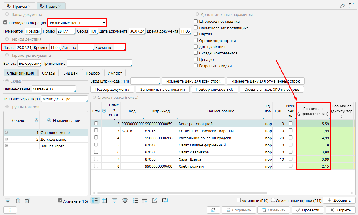 Устанавливаем действующие цены.