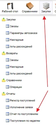 Формируется на форме Закупки - Отчет по поступлениям