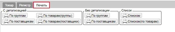 На закладке Печать располагаются кнопки, нажав которые, можно получить соответствующие печатные формы.