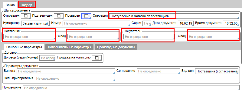 Заполняем Шапку заказа и Спецификацию через закладку Подбор.