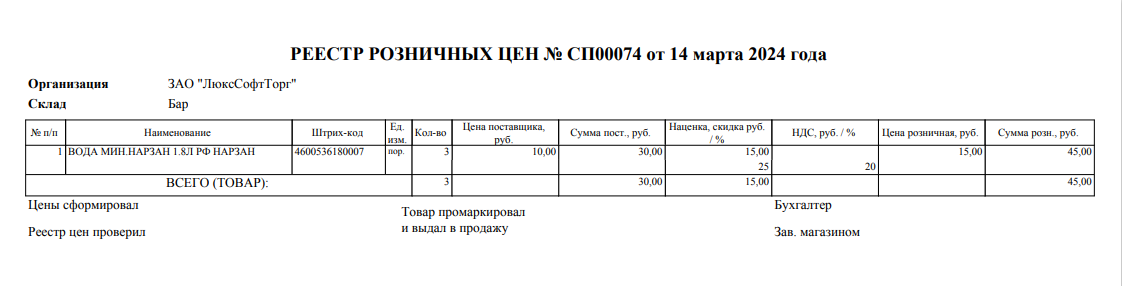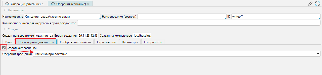 Для этого в Операциях списания  включается настройка (рис.2), в результате которой формируется документ "Расценка товаров".
