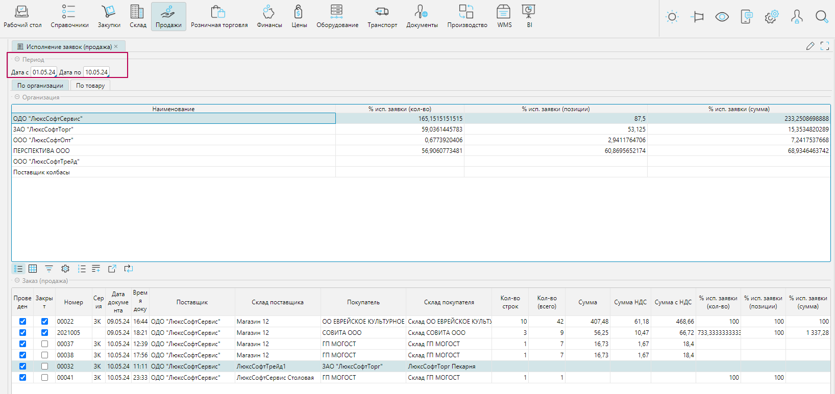 Информация отображена в двух вкладках "По организации" и "По товару"