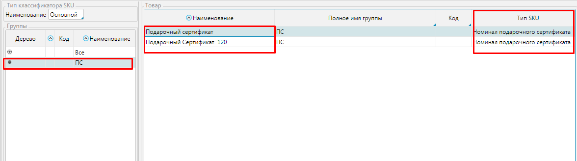 В модуле с расширенной функциональностью каждый номинал подарочного сертификата является товаром с типом SKU Номинал подарочного сертификата.