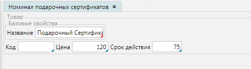 Группа товаров для сертификатов - задается товарная группа, в которую будут сохранятся все созданные номиналы.