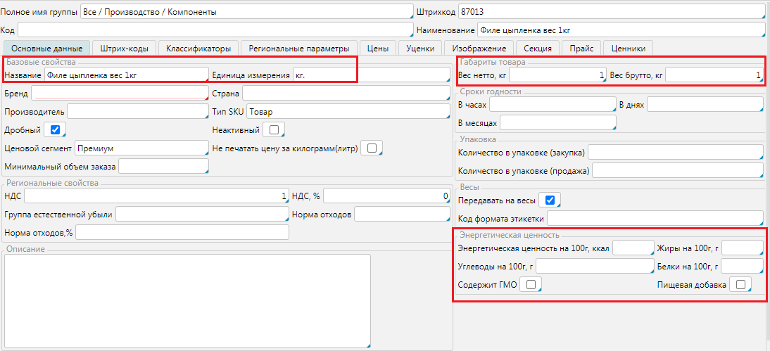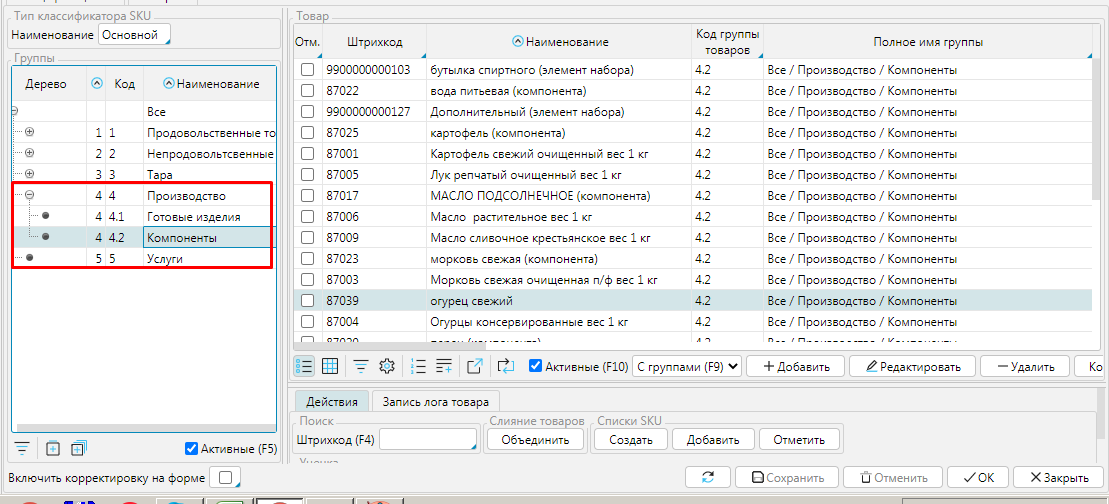 Для товаров, которые выступают компонентами в производстве, удобно создать отдельную товарную группу в классификаторе.