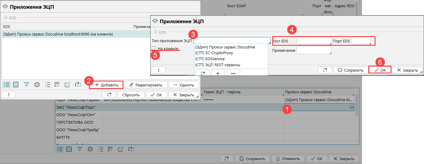Провайдер EDI для накладных - провайдер, через которого осуществляется обмен электронными накладными. В таблице отображаются Ваши компании. Необходимо указать, какого провайдера использует каждая компания (рис. 5(4).