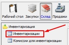 Заходим на форму Инвентаризация модуль Склад.