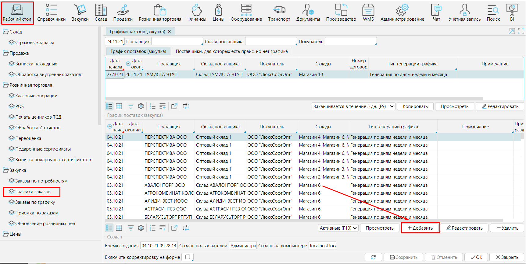 Поставщика и его Склад - Если у поставщика несколько складов, для заказов с каждого склада необходимо создавать свой график