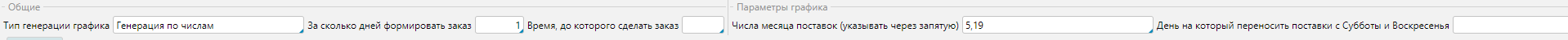 Тип генерации графика - выбор типа алгоритма расчета дней заказа и поставки. Возможные варианты: генерация по дням недели и месяца, генерация по числам, генерация через N дней.