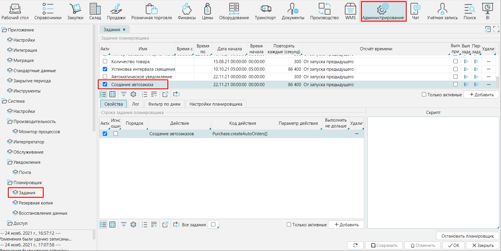 На форме Администрирование - Планировщик - Задания надо добавить задание на автоматическое формирование заказов. Как создавать и настраивать задания подробно описано здесь.