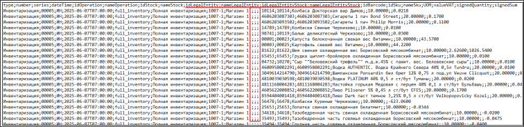 Рис. 2 Пример экспорта документа инвентаризация в формате
